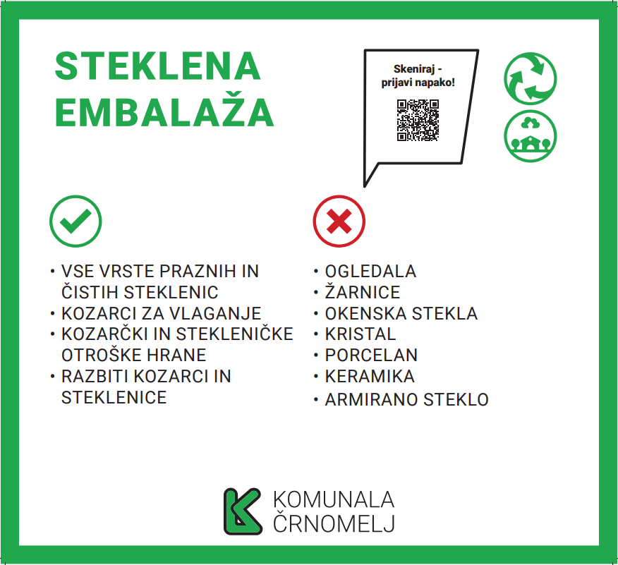 V zabojnik za ločeno zbiranje steklene embalaže NE SODIJO: (zabojnik z zelenim pokrovom)